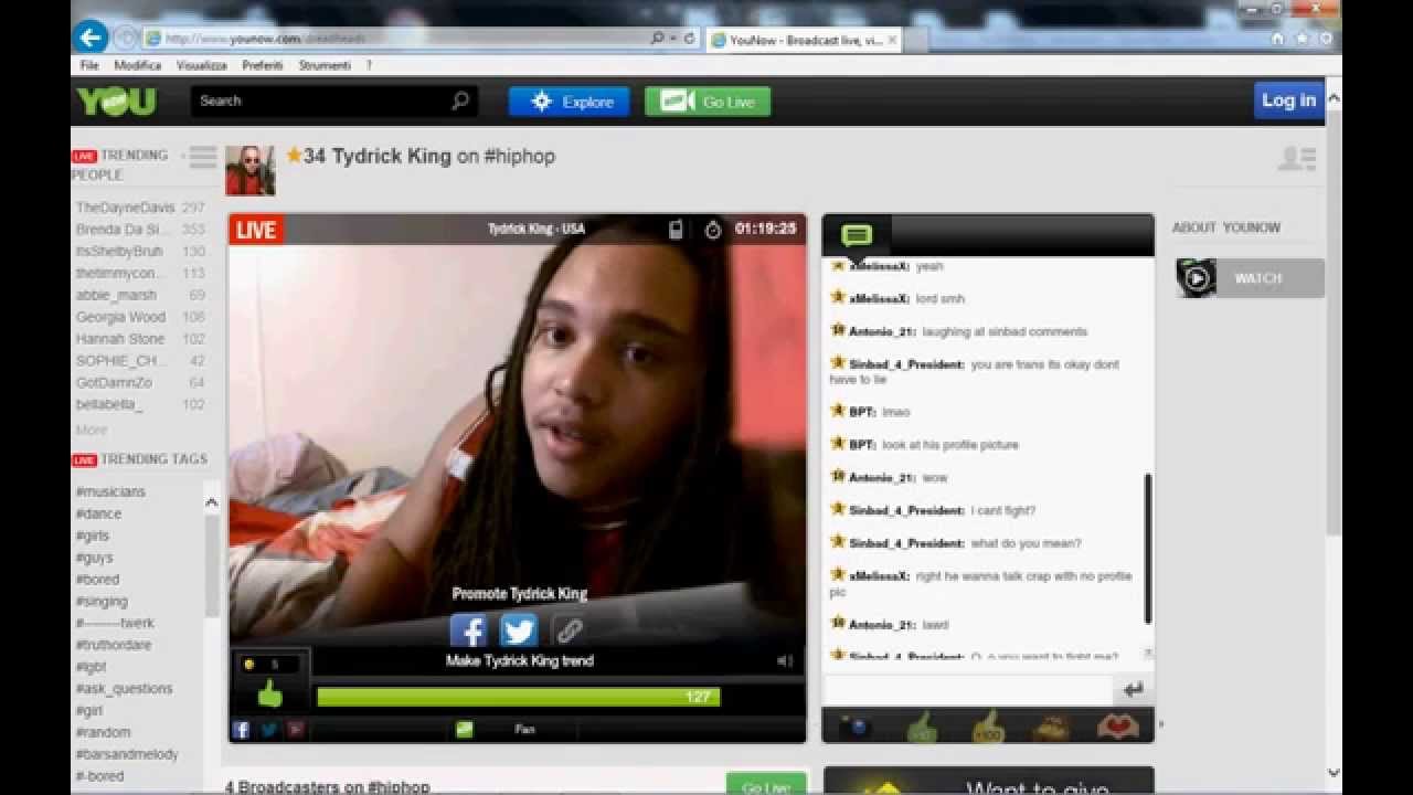 On YouNow you chat with live broadcasters and vote. Find Anything You Can Imagine Here. Please enter your exact YouNow Username.